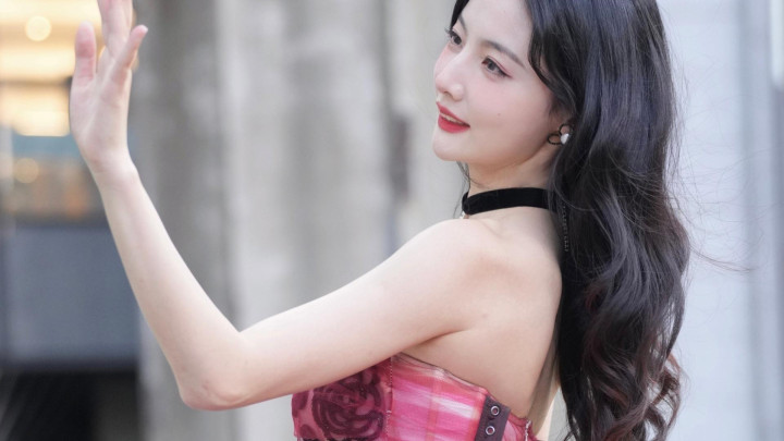 许久未见, 赵粤也是长大了, 穿玫瑰抹胸裙秀曲线, 美背白到发光!