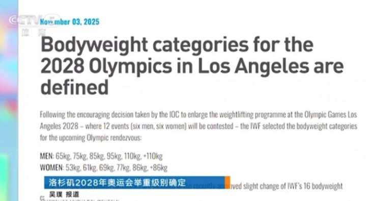 直播吧11月4日讯国际举重联合会公布了洛杉矶奥运会的举重项目设置。洛杉矶奥运会举重比赛将有男、女各6个小项,共12枚金牌。
