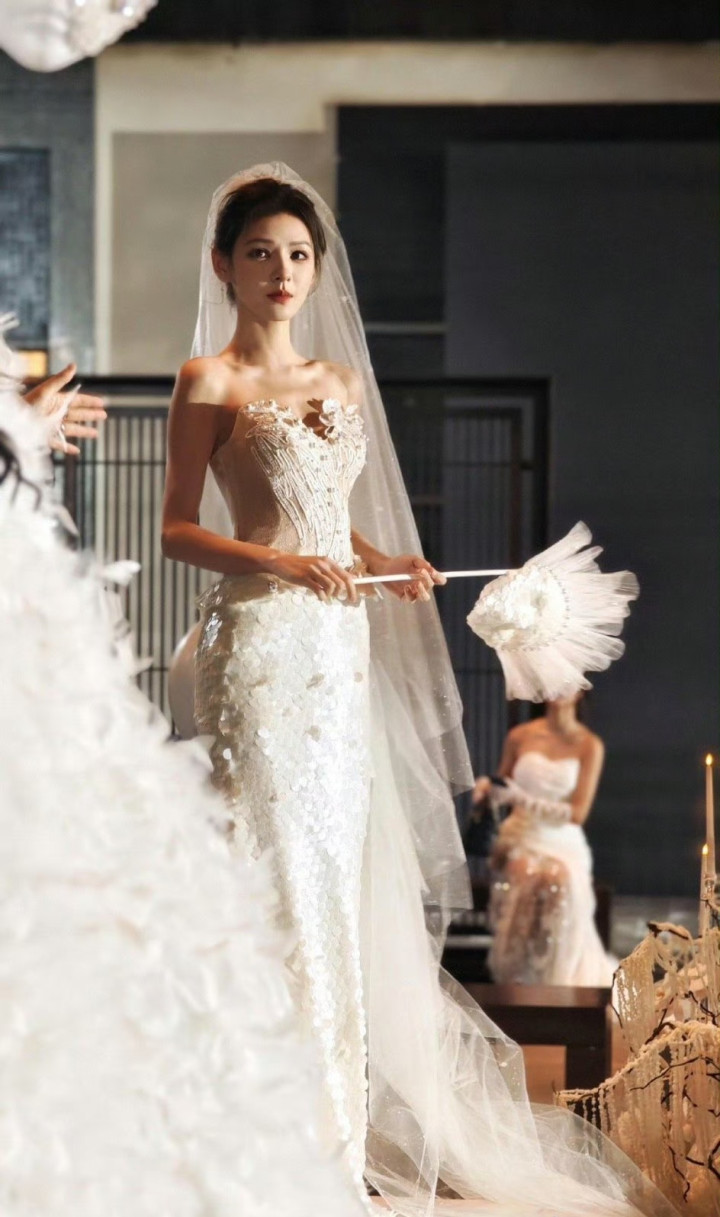 张予曦亮相三亚婚纱周走秀,一身白色鱼尾婚纱超吸睛,缎面泛着柔润光泽,腰腹处的珍珠绣线顺着身形蜿蜒,像给裙身镶了层细碎星光,手持的羽毛扇一抬,连发丝都浸着优雅温婉。
