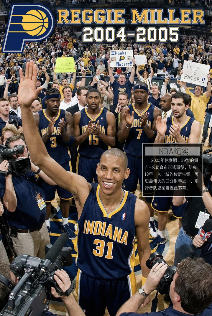 ⑤、2005年休赛期,39岁的雷吉·米勒宣布退役,结束了自己18年全部效力于印第安纳步行者队的传奇生涯。雷吉·米勒的NBA生涯共命中2560记三分球,退役时位列NBA历史三分球总命中数榜首,5次入选全明星,是NBA历史最伟大的三分球射手之一,印第安纳步行者队史图腾就此落幕。