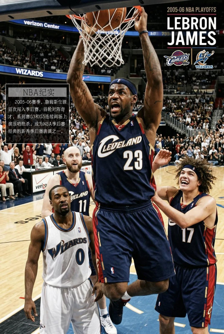 ②、2005——2006赛季,三年级的勒布朗·詹姆斯带领克利夫兰骑士队打出50胜32负的常规赛战绩,自1998年以来首次晋级季后赛;首轮对阵华盛顿奇才队,勒布朗·詹姆斯G3、G5连续两场上演压哨绝杀,成为NBA季后赛历史最经典的新秀季后赛表演之一,最终带队以总比分4:2 晋级东部半决赛。