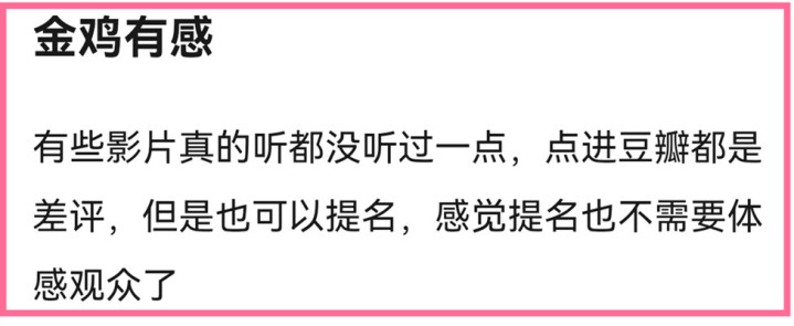 金鸡奖已经彻底不需要观众了,甚至认真去分析这个名单,都是一件很幽默的事情,还不如搞抽象有意思。