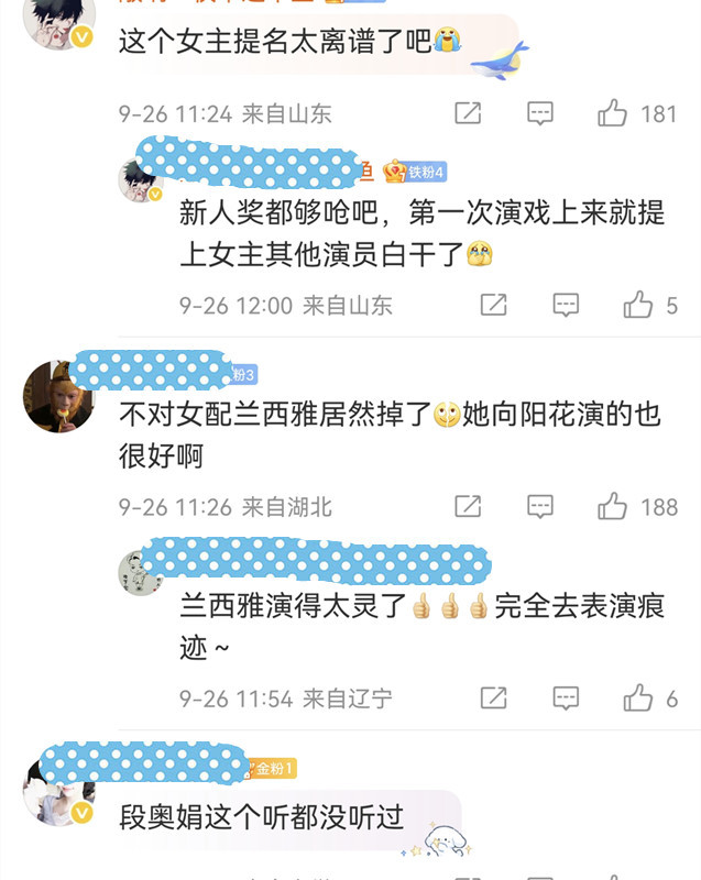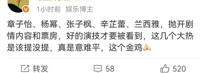 网友预测的几位大热门人选,竟然一个都没有,尤其最佳女主、最佳女配人选竟然全都出局了。