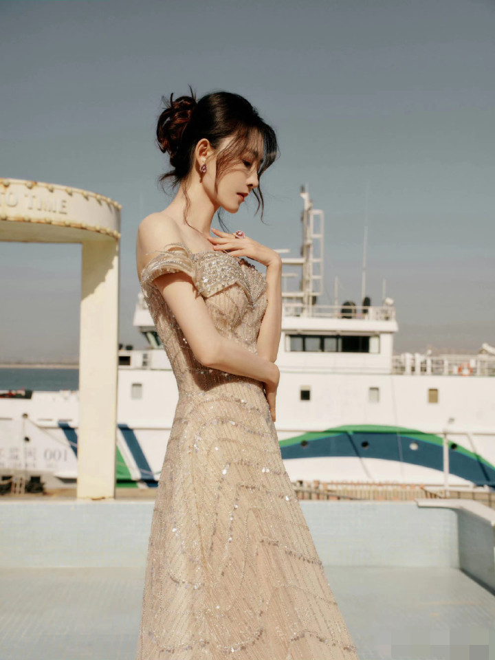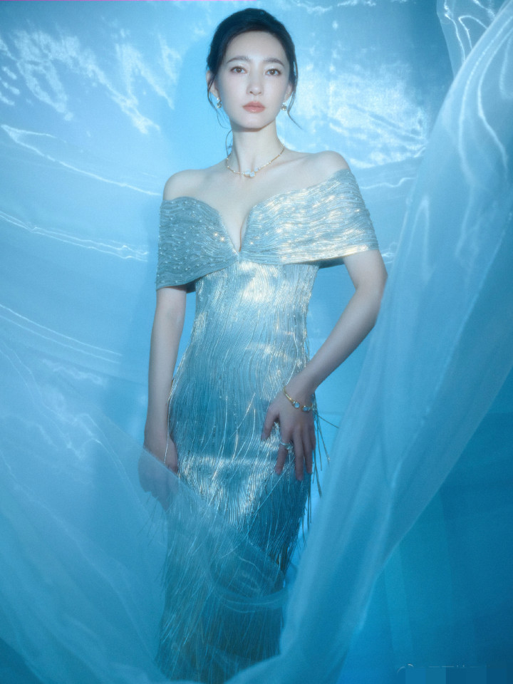 她的皮肤白嫩莹润,气质冷艳又柔媚。